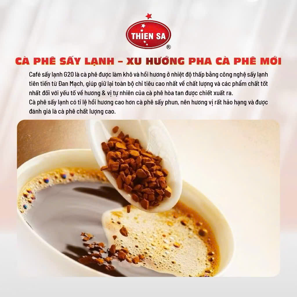Nếu bạn đang tìm kiếm một dòng cà phê tiện lợi mà vẫn giữ trọn hương vị nguyên bản, thì Coffee Sấy Lạnh G20 chính là lựa chọn lý tưởng.