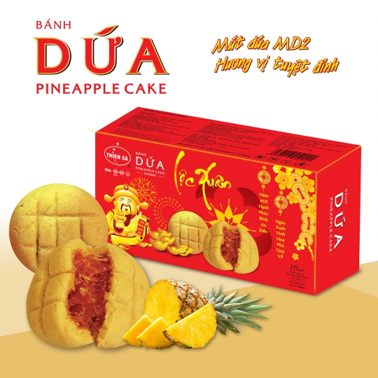 Với tạo hình đa dạng như hình quả dứa truyền thống, hình thỏi vàng thể hiện cho sự may mắn, lộc lá. Hay hình tròn nhỏ đơn giản…Những chiếc bánh dứa nhiều hình dạng với lớp vỏ mỏng giòn thơm mùi bơ, lớp nhân dứa thật dẻo và chua chua ngọt ngọt. Nhìn có vẻ đơn giản là vậy, nhưng khi nếm thử, du khách sẽ phải bất ngờ bởi sự hòa quyện giữa vị ngọt thanh của nhân dứa với lớp vỏ bánh giòn mềm. Bánh với phần nhân làm từ dứa (thơm) và một nguyên liệu “bí mật” để tạo độ ngọt.