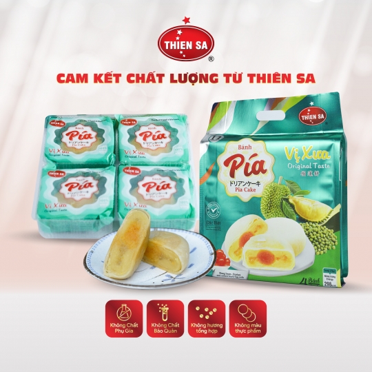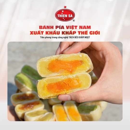 Là một trong những dòng bánh best seller bán chạy nhất của Thiên Sa, Bánh Pía Trứng Đậu Xanh Sầu Riêng đã chính thức xuất khẩu vào các thị trường quốc tế như: Mỹ, Canada, Pháp, Nhật, Nga, Hàn Quốc, Úc, Trung Quốc, Đài Loan, Malaysia, Lào, Campuchia… Đạt 4 tiêu chí xuất khẩu: FDA - ISO - HACCP - HALAL đảm bảo ATVSTP.