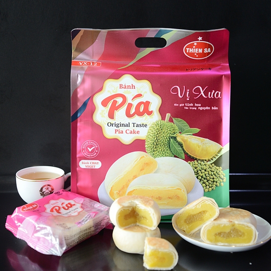 Đang ăn chay nhưng ghiền bánh Pía? Thử ngay Bánh Pía Chay Đậu Xanh Sầu Riêng Monthong tươi từ Thiên Sa, với vỏ bánh ngàn lớp đặc trưng và vị béo bùi nguyên bản của những chiếc Pía truyền thống Sóc Trăng ngày xưa.