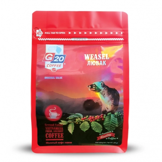 Cà phê phin chồn đỏ G20 Coffee được sản xuất tại Việt Nam trên dây chuyền công nghệ hiện đại, đảm bảo an toàn cho sức khỏe. Kết hợp cùng công thức chế biến riêng biệt, cho ra sản phẩm đạt chất lượng cao.