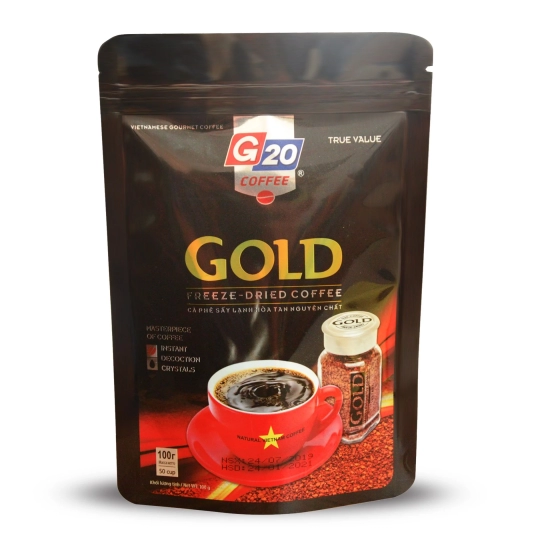 Cà phê sấy lạnh - Gold là phương pháp tiên tiến, giữ lại toàn bộ những chỉ tiêu cao nhất về chất lượng và phẩm chất của các yếu tố về hương và vị tự nhiên của cà phê hòa tan chiết xuất như các tiêu chí về màu sắc, hương vị, độ ổn định chất lượng và độ hòa tan.