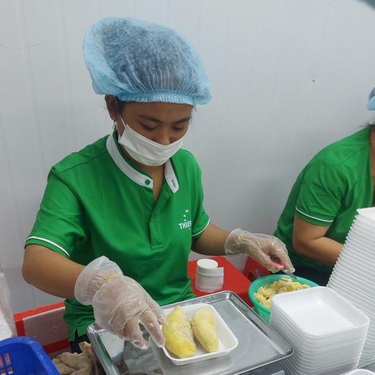 Sầu riêng đông lạnh (Frozen Durian) của Công ty Thiên Sa ( Thiên Sa Farm) được sản xuất theo dây chuyền công nghệ khép kín đáp ứng thị trường xuất khẩu.